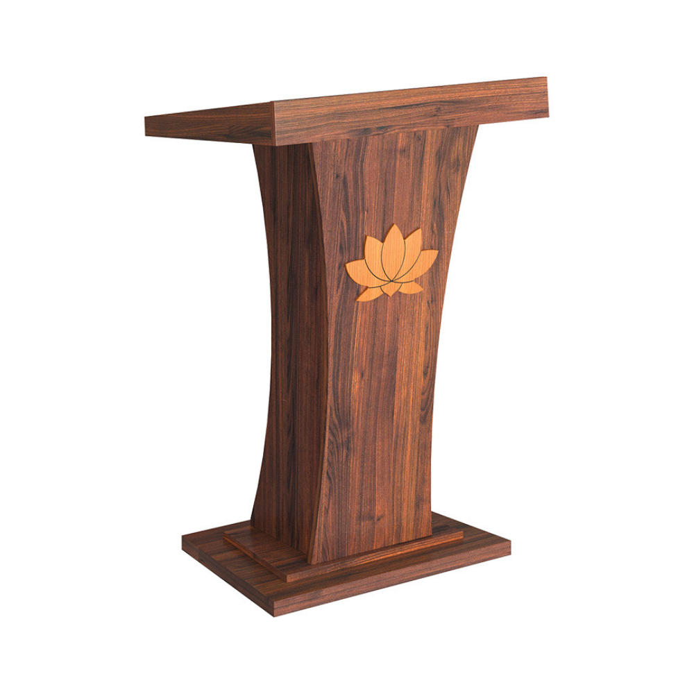 Bục phát biểu gỗ công nghiệp phủ melamin cao cấp (M6, M20). Mặt trước trang trí bông sen.