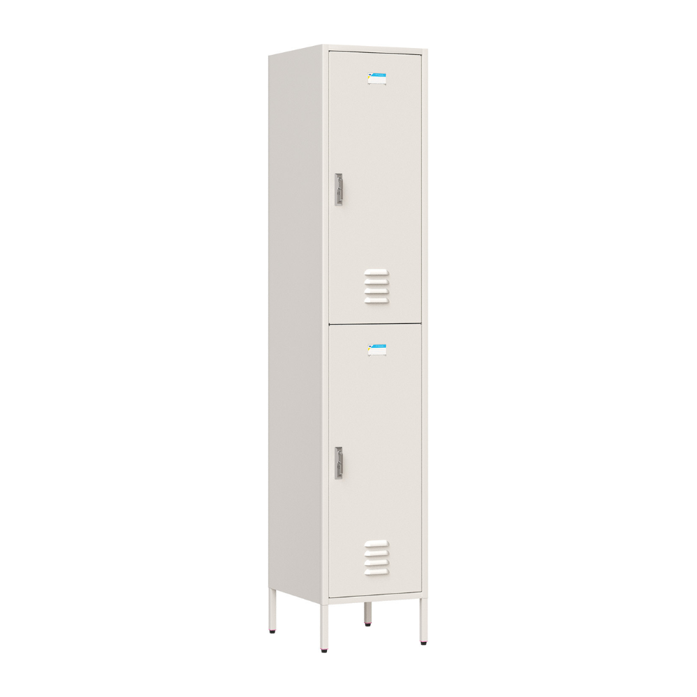 - Tủ sắt sơn tĩnh điện màu trắng ngà. Tủ có 2 khoang cánh mở, bên trong mỗi khoang 3 móc treo áo đơn, 1 móc treo áo đôi. Cánh sử dụng tay nắm cao cấp kèm hệ thống thanh khóa tự sập khi đóng.